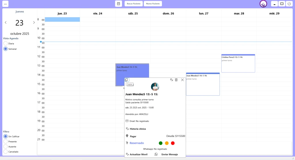 Copiar y Pegar: En la agenda tenes la opcion de seleccionar un turno, copiarlo y luego pegarlo en el nuevo dia y horario